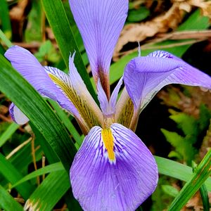 周りの草に埋もれるように咲いているカンザキアヤメ💜 かろうじてこの花だけが、全貌を見せてくれていました♪ この時期にアヤメの花を見るって、不思議な感じです。