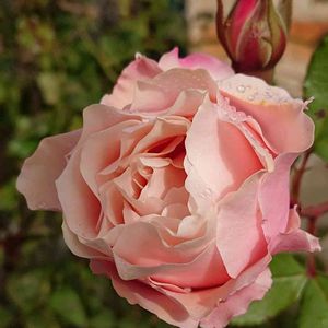 ダフネ🌹 けさは少し雨がパラついたのかな⁉️ 雨粒がついてる💧 ほんのりサーモンピンクがかったこの色って本当に可愛い💓 高い所ではまだまだ咲く気満々のダフネさん🎵 長く楽しませてもらいたいわ~💓