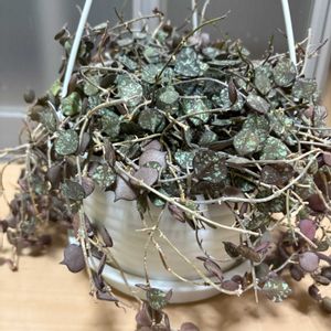 ホヤ・カーティシー 7号鉢に植え替えて1ヶ月弱。新しい枝がビュンビュン伸びてきて一安心。緑の枝が新しい枝です。気に入っていただけたようです。 鉢を動かすとき枝を巻き込みやすいから吊り鉢にしたかったなー(まだ言う)