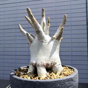 アデニウムアラビカムゴジ+bigF 来日してすぐ植えました。 幹はもちろん、枝元部分まで肥大してて、コミカルでかわいいです 日本ではほぼ流通してないコ早く葉をつけてほしいな