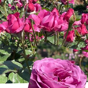 薔薇畑より⑵ ①レッドインテューシヨン 蕾の時も良い色だったけど 開花したらとっても綺麗益々綺麗🌹 ②王妃アントワネット ③オドゥールダムール 少し遅咲き とっても花付きが良く 今蕾が沢山これからが見頃です ④ザンガーハウザーユビレウムスローゼ とーっても長い名前 覚えられない🤣 とっても良い色 可愛い 大好きです ⑤アストリット.グレフィン.フォン.ハルデルベルク もっともっと覚えられない もう覚える気持ちさえ無い なが! 長すぎる〜🤣 お花はとっても綺麗ですロゼット咲きでワインレッド