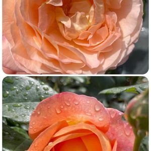 昨夜の雨結構な雨でした 畑の薔薇の枝雨の雫で倒れかかってました 薔薇畑から 雨の雫が残る薔薇達 ①ロビン オレンジ🧡から淡いアプリコットにコロッとした可愛いカップ咲きです いい香りです😘 ②フェルゼン伯爵 ラベンダー色で伯爵の気品のあるふわっとフリフリ 香りも素敵です ③シューセルクル クリームイエロー カップ咲き花びらが重なってとっても綺麗です ダマスクの薔薇って香りがします😚 ④ブラスバンド パッとする明るいオレンジ🧡フリフリでこれも大好きです🥰 ⑤ストロベリーアイス これもフリフリ咲きの可愛い咲き方します 花弁の中の方は白ぽいのですが咲き進んでいくと可愛いピンク🩷に とっても乙女チックなお花です 残念ながら香りほぼわかりません みんな雫💧でキラキラ みんな綺麗です