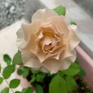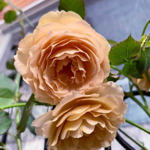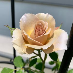 カミーユさん中大輪のボリュームで爆咲です♪ 香りはなく、ステムが少し長いので広いスペース向けのバラかなと思います。 我が家の極狭スペースでは他のバラを抑え切って溢れてしまう感じです。来年の誘引場所要再検討です。