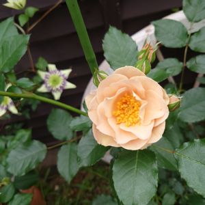 ラブロッシュさん🌹 河本麻記子さんのバラさんです🌹 赤み寄りの茶ではなく、黄色寄りの茶バラさん(∩˘ω˘∩ )♡ 昨年新苗でお迎えした子です(灬ºωº灬)フフフ~ン♪ 麻記子さんのバラさんは、お花が大きくないから好き(*´ω`*)💕