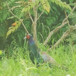 こんな光景が見れるなんて😆💖 ① あれっ⁈オスが2羽‼️🤭 とっても仲良し、何故? まだ6月、非繁殖期には早いし 子供はメスが育てるし …わからん🤣💦 ② カッコイイ🤩 ③ 母衣打ちが見れた4月🤩 ④ つがいに出逢えた5月💞 ⑤ キジくんの赤い肉垂れに合わせて ヤマアジサイ紅 ( ˶´⚰︎`˵ )♥️
