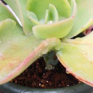 【エケベリア属 パリダ】 Echeveria pallida 別名 霜の鶴・桃姫 (パリダ・ハイブリッド) 原種 少し傷んでおりますが、 デカエケには目がなくて(*‘ω‘ *) 夏日に透けた大きな葉っぱに そそられてしまいました🌱 羽兼直行さんの著書には、 「原種」と記載されていましたが、 ビスタさんのサイトの別名では 「パリダ・ハイブリット」と記載 難しい事が分からないので、 両方掲載させていただきました お詳しい方、教えて下さいませ 「グリーンエケベリアの代表種とも言える普及種 立木性で20cm以上の高さに育つ ロゼットも20cmほど 花は濃いピンク 基部より子を出して群生」 【羽兼直行】さんの著書より抜粋