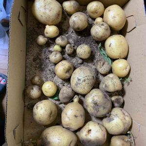 56日 2つのジャガイモを収穫してみた ちょっと 小さいけど 出来てた😊 今夜食べてみよ♪