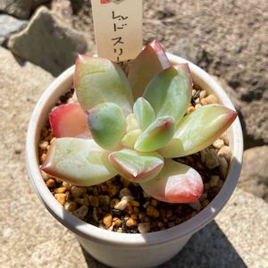 レティジアをそっくり返したような葉っぱのスモールランタン🌱 トップスプレンダーとか、トップシーデビーとかと同じようなものなのかな? もう一段、赤みが強くなって欲しいな〜