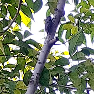 リュウキュウアブラゼミ お庭の桜の木にしがみついてました‼️( ⦿ᴗ⦿)まだ鳴いてはなくて、生まれたばかりなのかな〜🔰 この涼し気な木陰に癒されますよね〜(* ´ ` *)ᐝ