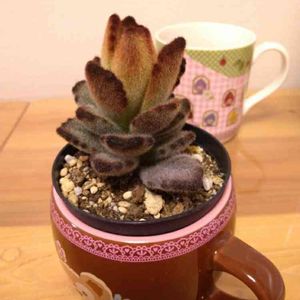 タルト型の鉢にミニ多肉達を寄せ植えしました🍰 カップ入りのテディベアと合わせると、カフェのような雰囲気に☕💕 日光浴時間・・・7:00~16:45