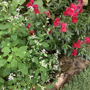室内で冬越ししたユーフォルビア ダイアモンドスノーと、昨年秋ごろに植え付けたキンギョソウが花壇で咲いています♪ 暑さに負けずに咲いてくれて嬉しいです☺️