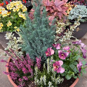 🎗️2025/03/21🎗️ お隣さんちのもうすぐ2歳ガールが気に入ってくれている寄せ植え ✾おかめももか ✾カルーナガーデンガールズ ✾プラチーナ ✾シクラメンマイクロゴールデンガール