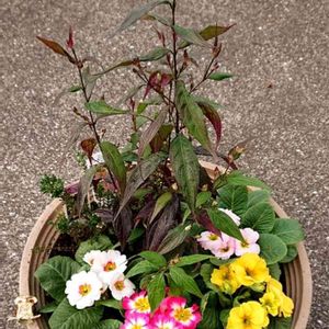 幸せを呼ぶフクロウ祭りに 参加させていただきます🎵 プリムラをメインに寄せ植えを作りました😊💗 フクロウのブローチを鉢の上に乗っけています😍 ちょっとわかりづらいです😂
