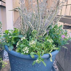 脇役のはずが、スイートアリッサムが主役になってしまった寄せ植え😅