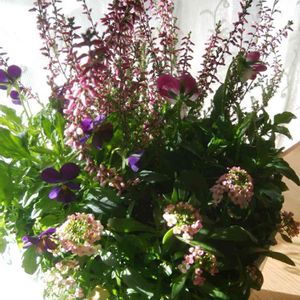 寒さに強いカルーナとビオラ,アリッサムで寄せ植えをしました😊今日の 暖かい陽射しの中、可愛く咲いています💓。 これから向かう寒い冬🌀元気に乗り越えて行こうね(*^_^*)