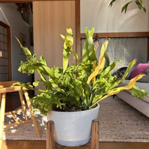 ハンギングは太陽光が直接当たらない所も多く、コウモリランたちは壁の反射光で育ってる。 徒長するかな?と思ってたけど、意外とぐんぐん伸び、新芽も出て貯水葉も出てるので意外と合ってるんだな。と思ってます。 このコウモリランは細長いタイプなので徒長かがわからず。 でも葉の厚みも、しっかりしてるので、色も劣っている感じはないのできっとこれがスタンダードな品種なんだろうな。 コウモリランは三つの株を育ててるけど、一つも品種がわからない。 これわかる人いるかな?いたら教えて貰いたいです