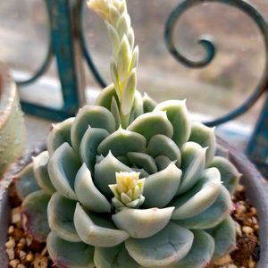 おはようございます☁️ 今朝は、真ん中から花芽の出てきたハオルチア メアリ たくさんの赤ちゃんをそろそろ植え替えた方が良さそうだ👼🍼 午後には☀️期待してます