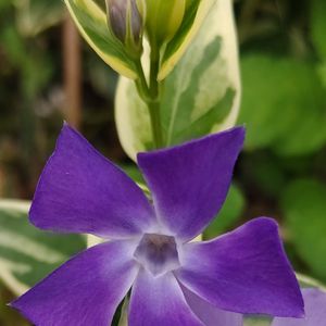 『ツルニチニチソウ』 花と蕾✨ 綺麗なパープルの花片✨ まだまだ色付かない 小さな小さな蕾✨ 🏷️『金曜日の蕾たち』 .