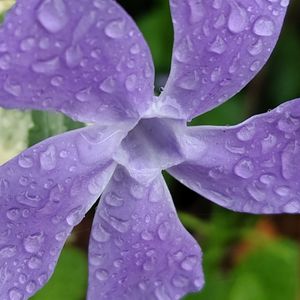 『ツルニチニチソウ』 🏷️『雫の世界』 淡い紫に 雫がヒカル✨ .