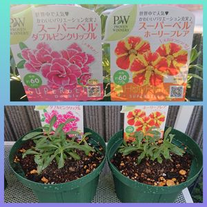 おはようございます☀️ PWスーパーベル ◇ダブルピンクリップル🎵 ◇ホーリーフレア🎵 花友さんより情報を聞いて昨日買ってきました~😃 どちらも昨年諦めた苗です。 今年のカリブラコアはこれで終了かな😁