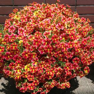 切り戻し後の花が、完全に黄色化していたホーリーフレアに、少しずつ赤味がさしてきました♥️ 花も増えつつあります。 我が家では、ペチュニアよりカリブラコアの方が元気があります。 夏を耐えたのは殆どカリブラコアでした。 根元はだいぶ木質化してますけどね笑 冬越し出来るかな?