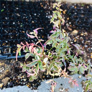 斑入り羽衣ジャスミン'ミルキーウェイ' 既に沢山蕾をつけた鉢植えも売られてますが 葉っぱが気に入ったので敢えてベイビーリーフから育てています。 しかし全然成長が見られない(๑o̴̶̷᷄﹏o̴̶̷̥᷅๑) あれから2週間経つのに… 葉っぱも部分的にしか斑入りじゃないし💧