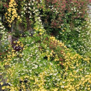 蔓性の花が満開🌼🌺🌿モッコウバラ白、黃 羽衣ジャスミン とても素敵なカフェでランチ🍽️ もち、しっかり対策して💓