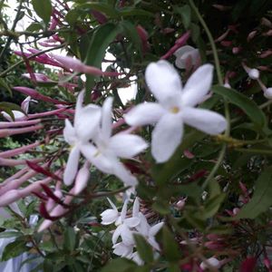 去年、強剪定過ぎたかなと思ったけど、なんなく花がついたジャスミン。琉球朝顔が今年の冬は越せなかったような気配なので、こっちの蔓をのばすかな🤔