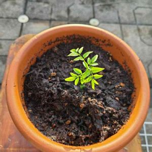 「羽衣ジャスミンの苗」 昨日 羽衣ジャスミンの小苗が届いたので植え付けました。 今朝の写メです。 根付いて大きく育ってください🎶