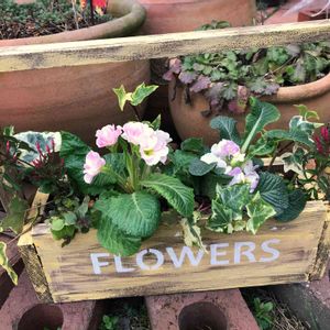 木箱🔨 最近黄色がかわいい💕 見切り品のジュリアン植えてみた🌸 ツボミもいっぱいあるから、これからまだまだ咲いてくれるはず😊