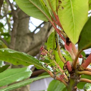 2025.1.6 Monday ☁️ 今日のお花 ユズリハ 昨年の4月に初めて出会ったユズリハの雄花 新しい葉っぱの下に茶色く見えるのが雄花 古い葉と新しい葉の間にお花がついているようです。 4枚めと5枚め 5月に再度見に行ってみたら、新しい葉っぱにすっかり入れ替わっていました。 茶色の雄花はすっかりなくなっています。 赤色かかっていた幼い新葉も黄緑色が濃くなっていました。 次の世代に譲られたようです。 雌株にも出会えるといいなぁと期待しちゃいます。
