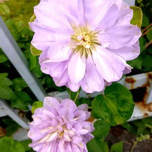 🍀クレマチス・天空?🍀 ☘️デニーズ・ダブルと判明☘️ 3番手のクレマチスです。花数がだんだん少なくなってきました。😭😭😭 まだ名前が確定できません。😰 同じのを持っている方教えてくださいね。🙏🙏 2022.4.22 2021.4.26 に投稿しています。 本日2投稿目です。 ごめんなさい。🙏 追記 2024.1.14 名前がデニーズ・ダブルとわかりました。 ひょんな所から🏷が見つかりました。 色々考えてくださってありがとうございました。🙇