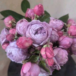 昨晩は凄い雷雨⛈️でした。 今朝は鉢がいっぱい倒れてました😥 風強かったからなぁ〜 でも少しは潤ったみたい(^^♪ ①まだ早いかなと思ったけれど、深く切るし遅咲きだからノヴァーリス🌹今日剪定しちゃいました✂️まだ見られる花は飾ります🎶 ②オデュッセイア🌹少し花びら増えてきたみたい ③クロードモネ🌹 ④ラリッサバルコニア🌹 ⑤メアリーレノックス🌹