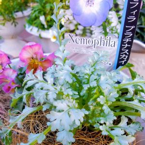 ネモフィラプラチナスカイ なんだけも、花びらが白いような🤔 まぁ、これはこれでいい😆 シルバーリーフも可愛い😍
