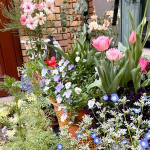 ネモフィラプラチナスカイはやっぱり可愛いね💕 種まきからの発芽が遅く、後から花壇の隙間に 定植しました。 今年は沢山自家採種して増やしたいなぁ。 この場所には原種チューリップやトリテレイアの 球根を植えたのですが、花は咲きませんでした。 お気に入りを見つけたのに残念😭 咲かなかったはなんでだろう。