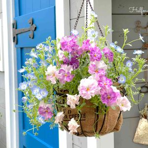 秋にギャザリング練習〜🌿 のもう1鉢 ラグラス ギリア アスパラ ヘデラ ラムズイヤー ネモフィラ他 グリーンとブルー系のギャザリングのつもりだったのが💦 なんだかわちゃわちゃ⁇ 凄いことになってます🤣 プラチナラベンダーも開花💜 上のラグラスもモフモフが顔を出してきました〜