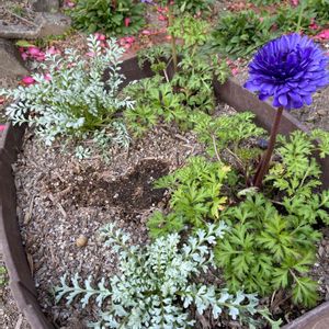 八重咲きのアネモネと ネモフィラプラチナスカイ シルバーリーフがだんだん大きくなってきました♪
