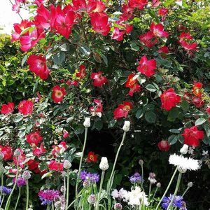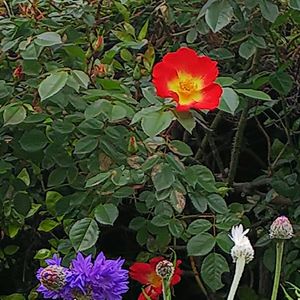 コミュニティ花壇 つるばらのコクテールとヤグルマギク(矢車菊)の共演で~す♪🤗💕✨🎶