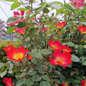コミュニティ花壇 つるばらのコクテール(カクテル)が次々と咲き始めましたよ~♪🤗💕✨