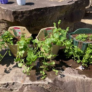 グリーンカーテンにロフォスを植え付けました。お花の蕾もだいぶ膨らんで楽しみ🥰朝顔も芽が🌱✨もう少し大きくなったらグリーンカーテン用のプランターに植え付けようと思います😃✨