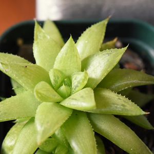 ハオルチア 菊花の舞 ほぼ1ヶ月前に、根っ子の無い状態で、ホームセンターの赤札コーナーから、救出した子 真ん中が緑になって来たよ!頑張れ!