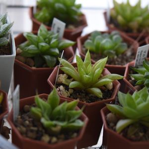 欲しかったハオルチアさんと やっと出会って🥰 鉢が変形するほど、お子様のついてる子も いて、テンション⤴︎⤴︎⤴︎😆 名前のわかる方、おしえてください。