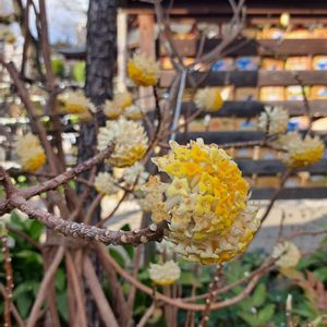 ミツマタ✨ 茎の先が3つに別れてるからなのね、と改めて納得?😅 受験生頑張れ~🌸 鈴なりの絵馬の願い 青空に届きますよーに🙏