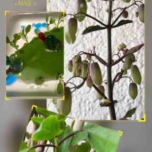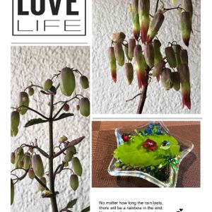 セイロンベンケイソウ 葉から芽🌱でお馴染みのセイロンベンケイソウ。 2018年にこんなに小さな芽を出し可愛かったのですが、今は1mほどになり花が咲く準備をしています。 いつも外に置いてあり、風に当たり葉が傷んでしまっていたので花を残して葉を取り除いてしまっています。 大規模修繕でベランダに置けないし、中庭に出せないし家の中に避難しています。