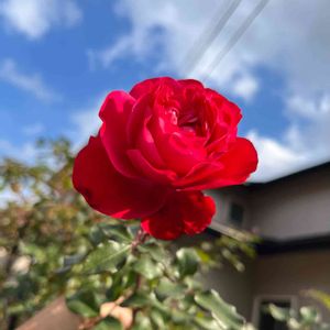 スー・リール・ドゥ・モナリザ♡ お正月 〜青い空と赤い薔薇〜 もうそろそろ冬の剪定しなくちゃだけど モナリザさんってば元気良すぎ〜♪(*^▽^*)♪