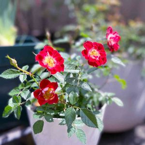 ミニバラ♡ 4年目のミニバラさん♪ カーポートの屋根の下で 少しずつ成長してるかも〜(*´꒳`*)〜 2023 バラ開花〜④