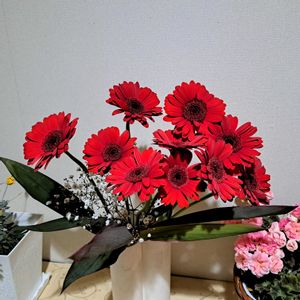 玄関で迎えてくれる ガーベラ 強風の一日 花散歩はパス 残念⤵