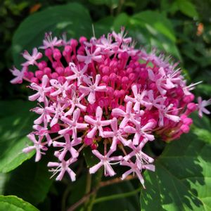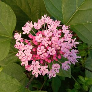 おはようございます👋 小花がたくさん咲いてひとつの丸い お花になって咲いているボタンクサギ 優しいピンクがとっても素敵です💕 粒々の蕾も可愛いです😌💓