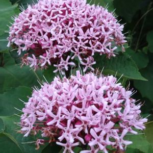 ボタンクサギ 実家の近くの道端で🍀遠くから見ると まるで、紫陽花のなような感じ(*^^*) クマツヅラ科クサギ属の落葉低木 中国原産で、日本でも暖地を中心に野生化。花がボタンのような咲き方で、葉をもむと独特の臭気があることから名がついたそうです。花には、甘い香りがありアゲハ蝶が好んで集まるそうです☺️💞