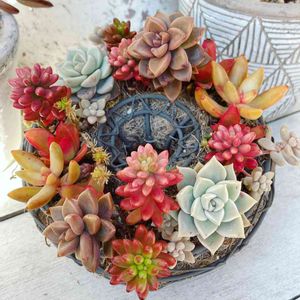 上↑は元の寄せ植えで、昨年秋に伸び伸びになったので頭をカットして 下↓作ったリース💕 元の寄せ植えはそのまま成長を観察中🌱👀これはこれでいい感じ✨